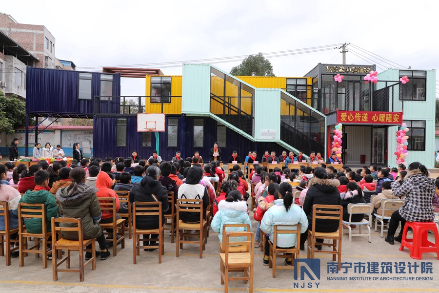 12月17日,寒風(fēng)瑟瑟,但在隆安縣古潭鄉(xiāng)育英村小學(xué)的校園內(nèi)卻是暖意融融,歡樂(lè)不斷。當(dāng)天上午,由我院無(wú)償設(shè)計(jì)的育英村小學(xué)宿舍樓“會(huì)飛的盒子008號(hào)”正式揭牌啟用,可為路途遙遠(yuǎn)的學(xué)生們提供一個(gè)溫馨的居所。