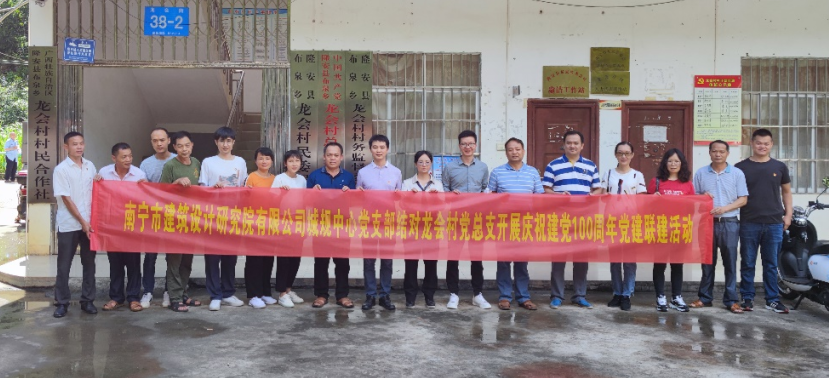 7月9日,南寧市建筑設(shè)計(jì)研究院有限公司城規(guī)中心黨支部聯(lián)合隆安縣退役軍人事務(wù)局黨支部、隆安縣布泉鄉(xiāng)龍會村黨總支部在布泉鄉(xiāng)龍會村開展慶祝建黨100周年黨建聯(lián)建活動。隆安縣布泉鄉(xiāng)鄉(xiāng)長方寧、副鄉(xiāng)長黃玉勤,城規(guī)中心黨支部書記黃炎佳、總經(jīng)理韋波,隆安縣退役軍人事務(wù)局副局長李大安以及布泉鄉(xiāng)龍會村黨總支部黨員代表共計(jì)80余人參加本次活動。