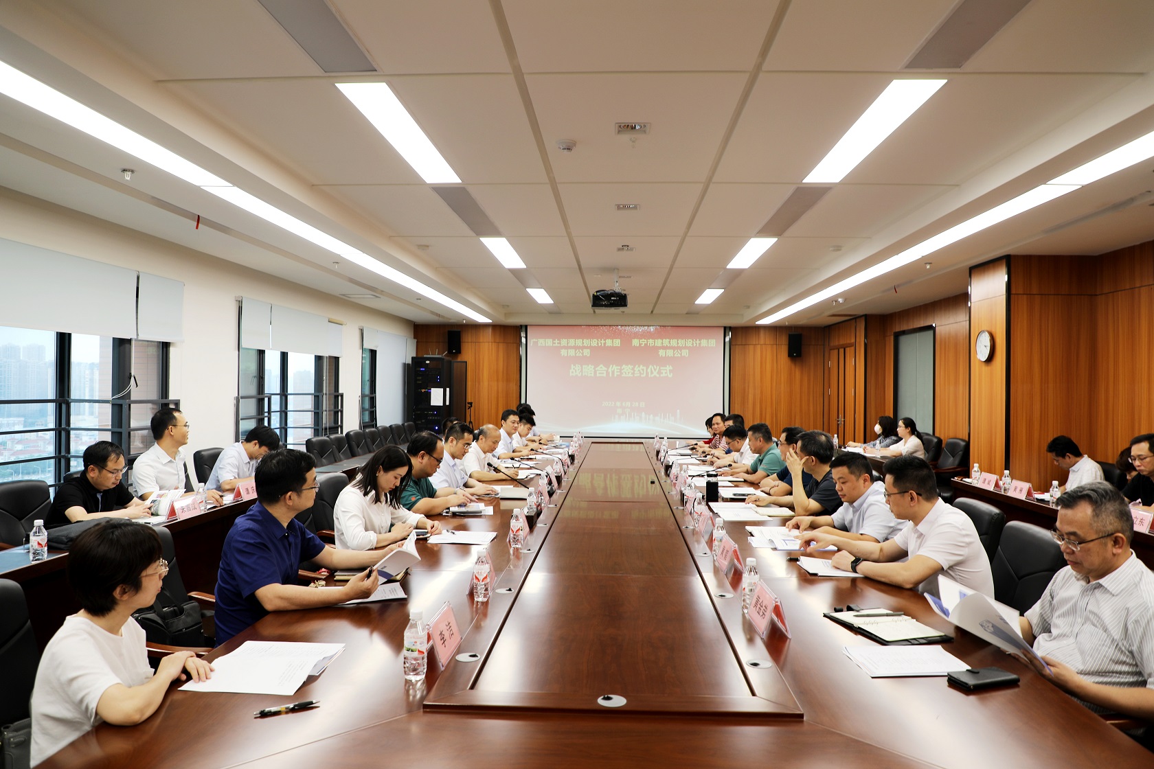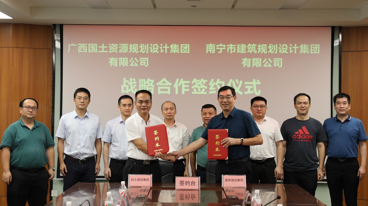 6月28日,南寧市建筑規(guī)劃設(shè)計集團(tuán)有限公司與廣西國土資源規(guī)劃設(shè)計集團(tuán)有限公司戰(zhàn)略合作簽約儀式在我集團(tuán)舉行。集團(tuán)黨委書記、董事長韋文學(xué)和廣西國土資源規(guī)劃設(shè)計集團(tuán)黨委書記、董事長鄧強出席儀式并見證簽約,集團(tuán)總經(jīng)理、副董事長馮江泉和廣西國土資源規(guī)劃設(shè)計集團(tuán)總經(jīng)理、黨委副書記、副董事長魏玉平分別代表雙方簽訂戰(zhàn)略合作協(xié)議。