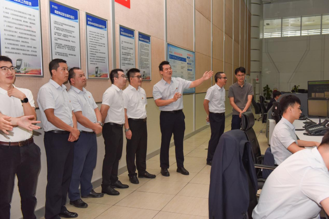在維修中心四支部的帶領(lǐng)下,雙方共同參觀了南寧軌道交通集團(tuán)的調(diào)度指揮大廳,走進(jìn)南寧地鐵運(yùn)營的“中樞大腦”,近距離接觸地鐵安全運(yùn)行的“幕后英雄”??吹焦ぷ魅藛T正緊張有序地通過監(jiān)控大屏關(guān)注著線上的車輛、信號、供電、線路和客流情況,講解員詳細(xì)地介紹了軌道列車運(yùn)行監(jiān)控及調(diào)度保障行車安全等內(nèi)容,讓綜合二支部黨員對聯(lián)盟企業(yè)的主營業(yè)務(wù)有了更加直觀生動(dòng)的了解。
